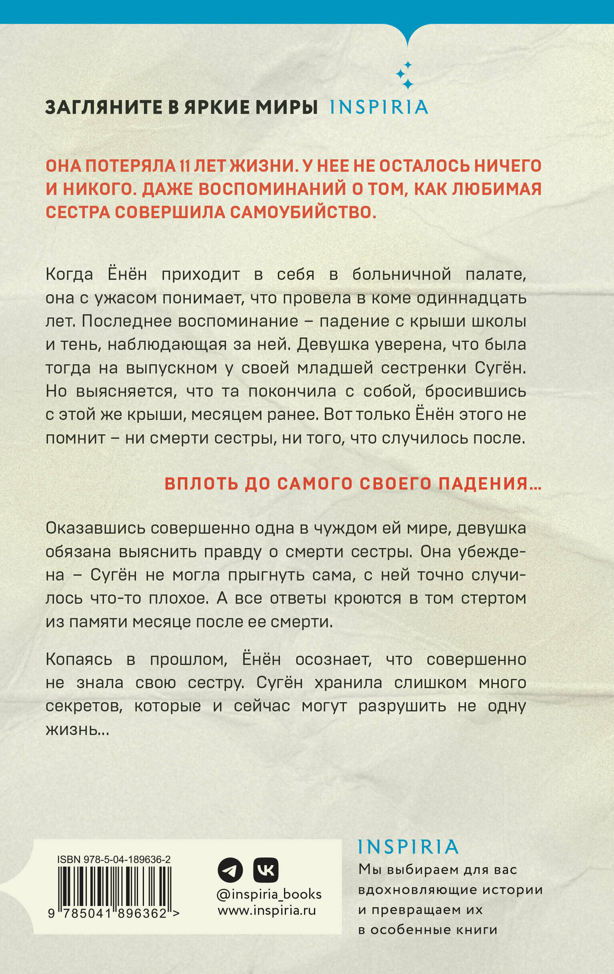 Оказавшись совершенно одна в чуждом ей мире, девушка обязана выяснить правду о смерти сестры. Она убеждена – Сугён не могла прыгнуть сама, с ней точно случилось что-то плохое. А все ответы кроются в том стертом из памяти месяце после ее смерти.