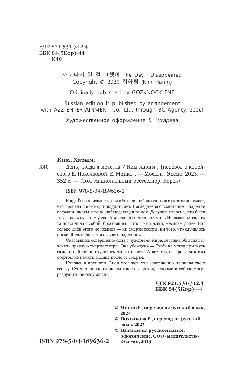 Книга: День когда я исчезла (Ким Харим); Эксмо, Inspiria, Редакция 1, 2023