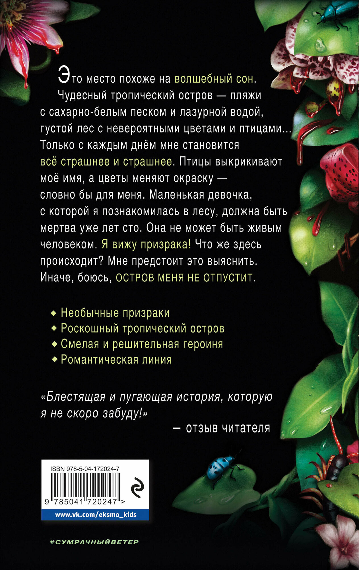 Аделин Спенсер повезло: она осталась жива после несчастного случая на соревнованиях по фридайвингу. Чтобы помочь дочери отдохнуть и отвлечься, мама берёт её в поездку на тропический остров. Адди ждут пляжи с белым песком и лазурной водой, пещера с подземным озером, заросшие лианами развалины старого дома в джунглях… и знакомство с потрясающим парнем. Кажется, даже сам остров рад новой гостье: птицы выкрикивают имя Адди, цветы при её приближении меняют окраску. Это место похоже на волшебный сон, но девушка не может избавиться от тревоги. Адди кажется, что маленькая девочка, которую она видела в лесу – призрак. И что призраки ещё не самая страшная тайна этого острова…