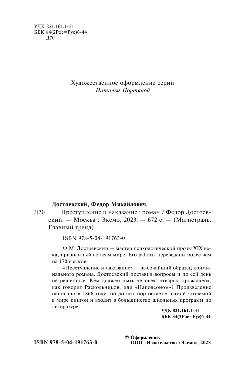 Книга: Преступление и наказание (Достоевский Федор Михайлович); ООО "Издательство "Эксмо", 2023