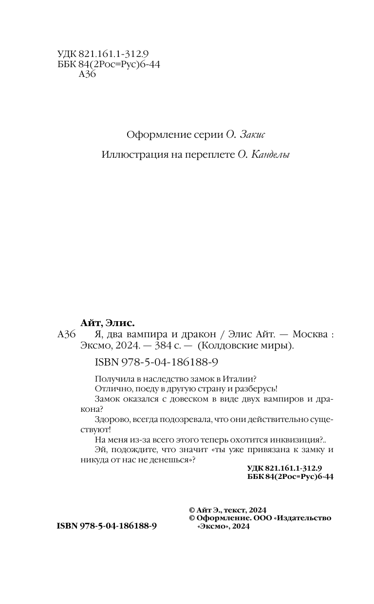 Книга: Я два вампира и дракон (Айт Элис); ООО "Издательство "Эксмо", 2024