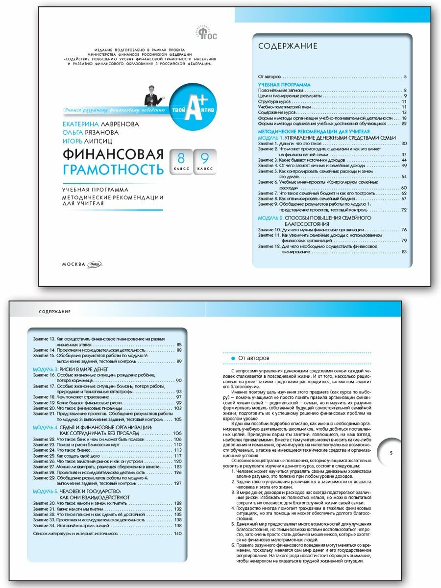 Финансовая грамотность. 8-9 классы. Учебная программа. Методические рекомендации для учителя (Липсиц Игорь Владимирович, Лавренова Екатерина Борисовна, Рязанова Ольга Игоревна); Вако, 2023