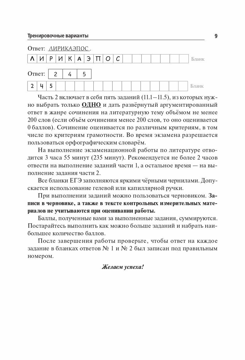 Хорошая книга по подготовке к сдачи экзаменов по литературе с двумя десятками тренировочных вариантов, к которым еще имеются развернутые ответы. Отмечу, что это пособие будет полезно прочитать тем, у кого имеются проблемы с написанием сочинений. В книге есть целый раздел посвященный проблематике сочинений, который содержит необходимые примеры, с помощью которых ученики смогут развить в себе навык сочинительства.