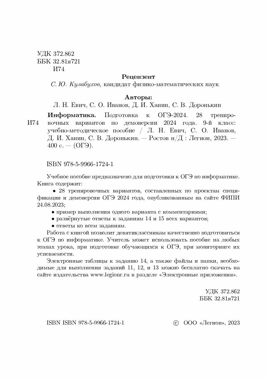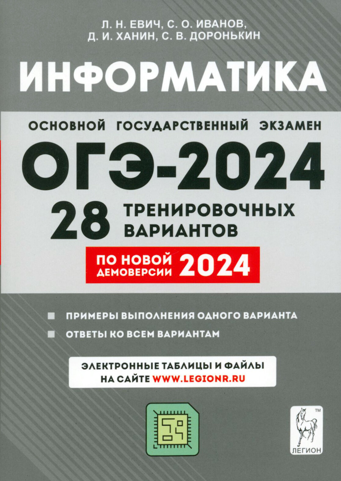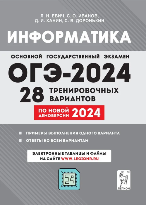 Информатика. 9 класс. Подготовка к ОГЭ-2024. 28 тренировочных вариантов по демоверсии 2024 года (Евич Людмила Николаевна, Иванов Сергей Олегович, Ханин Дмитрий Игоревич); Легион, 2023