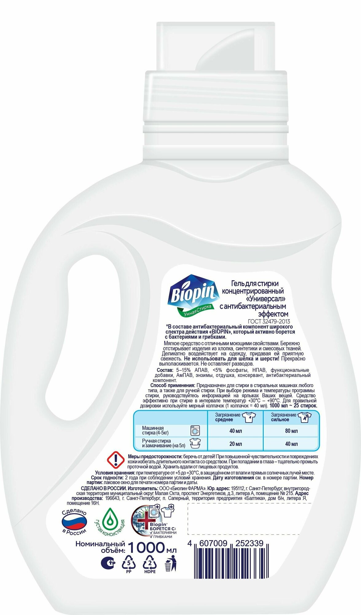 Гель Биопин Универсальный для стирки всех видов тканей 1 л Biopin