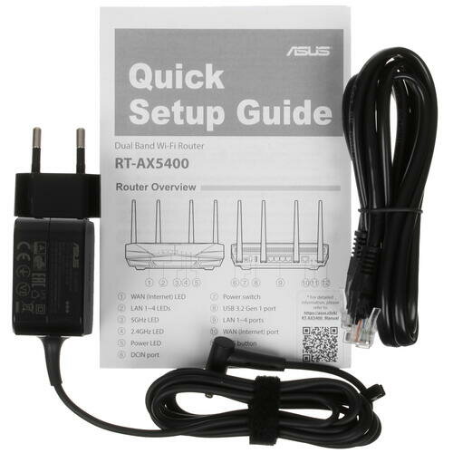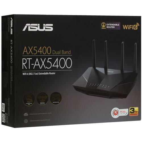 Маршрутизатор ASUS RT-AX5400 AX5400 Dual Band WiFi 6 (802.11ax) Extendable Router Included built-in VPN AiProtection Pro Network Sec 90IG0860-MO9B00
