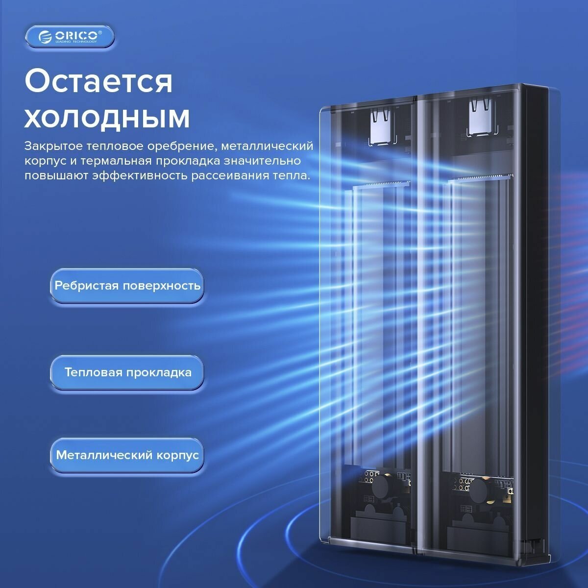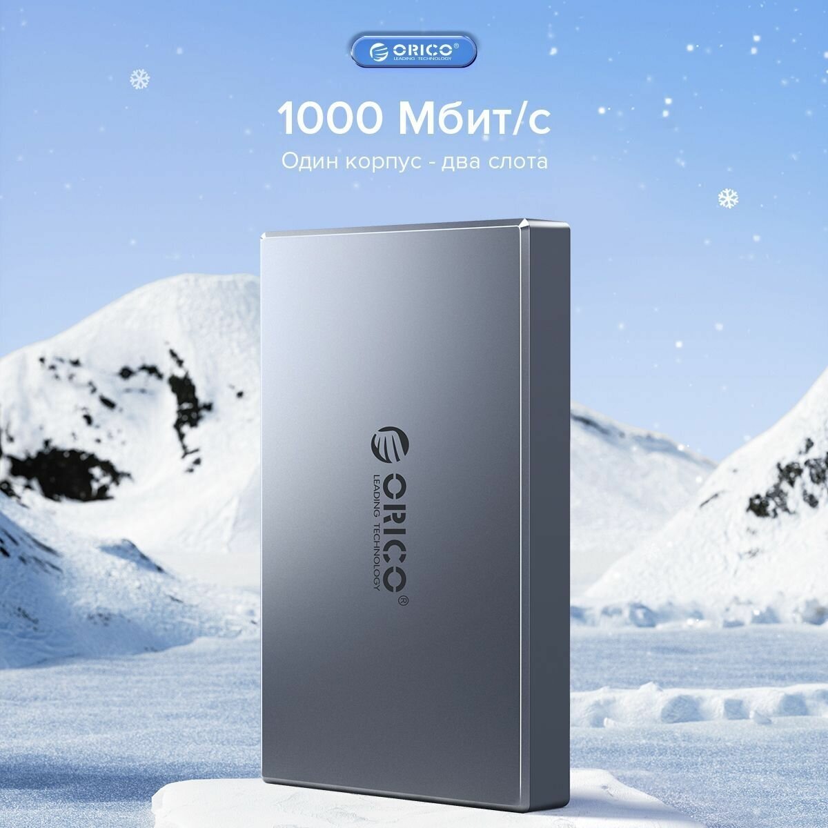 Внешний корпус Orico для SSD с двумя отсеками M.2 NVME+NVME Type-C/Type-C+Type-A 10 Гбит/ссерый ORICO-CM2C3-2N-GY-BP