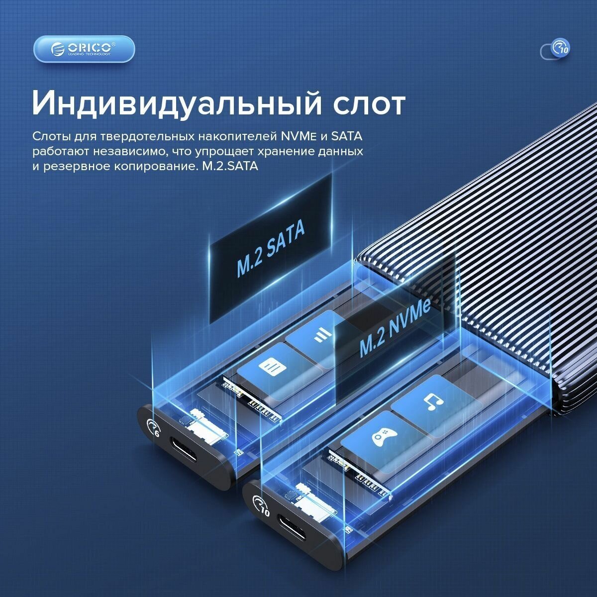 Внешний корпус Orico для SSD двумя отсеками M.2 NVME+SATA Type-C/Type-C+Type-A серый ORICO-AM2C3-2SN-GY-BP