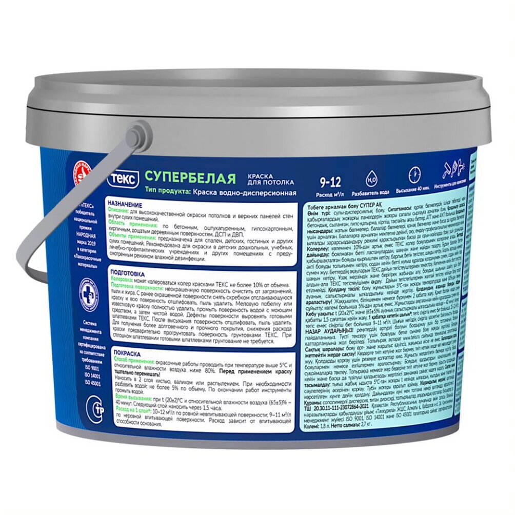 Сервис сравнения цен СкидкаГИД предлагает сравнить цены на товар «Краска для потолка ТЕКС Профи белая 1.8 л»