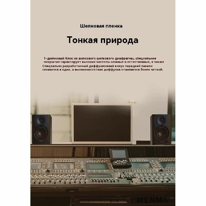 MR4 использует высококачественный чипсет АЦП (аналого-цифровой преобразователь) от Texas Instruments(SNR до 99 дБ) с усилителем класса D TAS5713, а также встроенный DSP для полной настройки звука, чтобы обеспечить отличную производительность в режиме dual mode. 1-дюймовая шелковая диафрагма со специальным покрытием обеспечивает ровные и естественные высокие частоты, а специально разработанная интегрированная передняя панель в сочетании с диффузором обеспечивает более четкое распространение высоких частот.