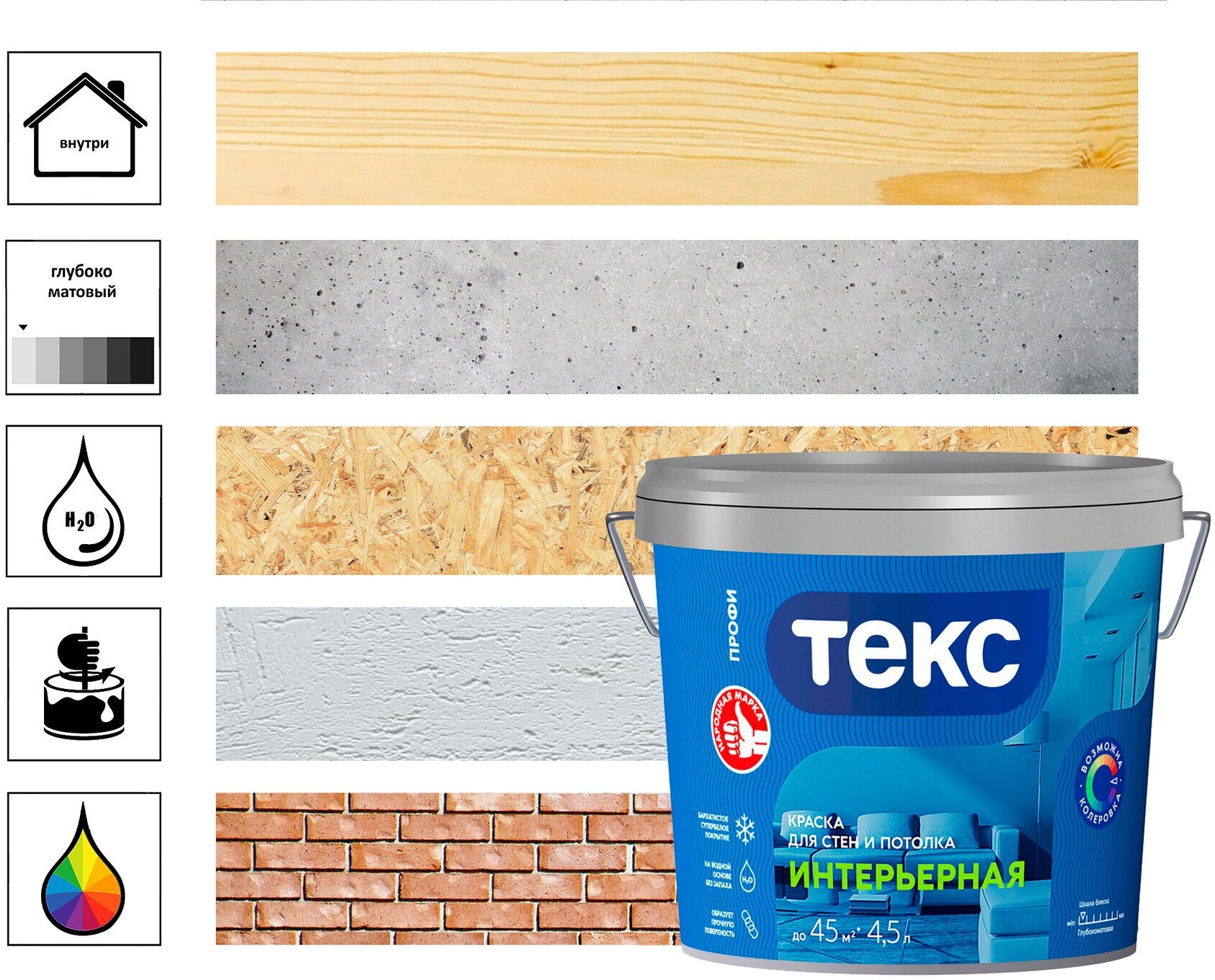 Краска для интерьеров ТЕКС Профи белая 4.5 л