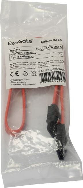 Кабель SATA Exegate EX138933RUS (7pin/7pin металлические защелки 04-05м) EX-CC-SATA-DATA-L