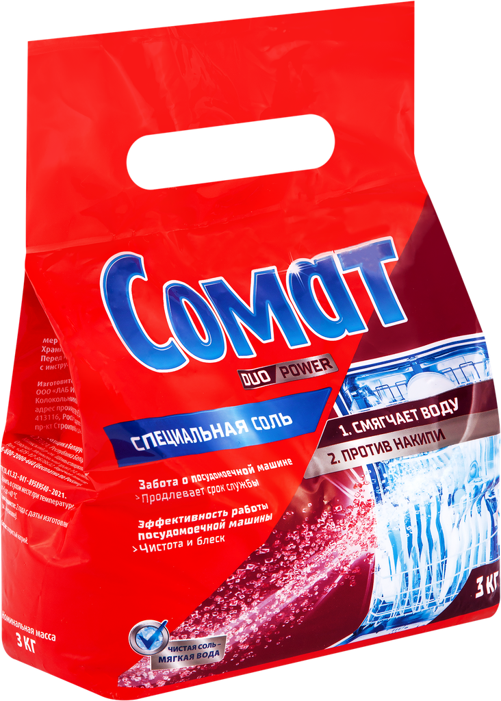 Сервис сравнения цен СкидкаГИД предлагает сравнить цены на товар «Средство для посудомоечной машины Сомат Специальная соль дополнительное средство для посудомойки 3 кг»