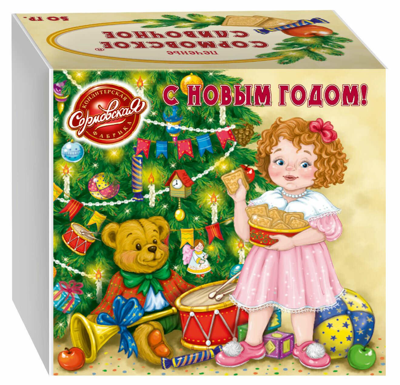 Классическое сахарное печенье "как из детства" со сливочным вкусом. Самобытная бумажная упаковка с новогодним дизайном. Изготавливается в строгом соответствии с ГОСТ.