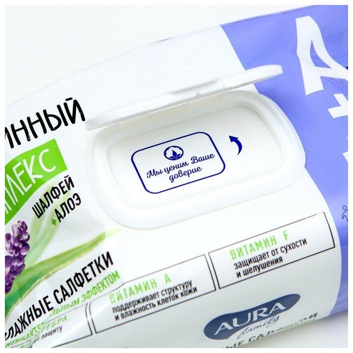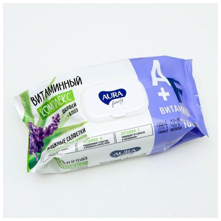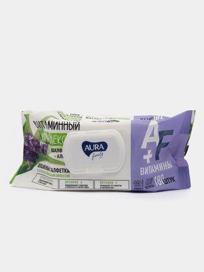 Влажные салфетки Aura Family очищают и освежают кожу. В состав лосьона входит комплекс витаминов A и F, а также ионы серебра. ИОНЫ СЕРЕБРА обеспечивают защиту от бактерий. ВИТАМИН А поддерживает структуру и влажность клеток кожи. ВИТАМИН F защищает от сухости и шелушения. Большой формат подойдет для использования в большой семье. Формат с крышкой защитит салфетки от высыхания. Такие салфетки незаменимое средство дома, на работе и отдыхе!