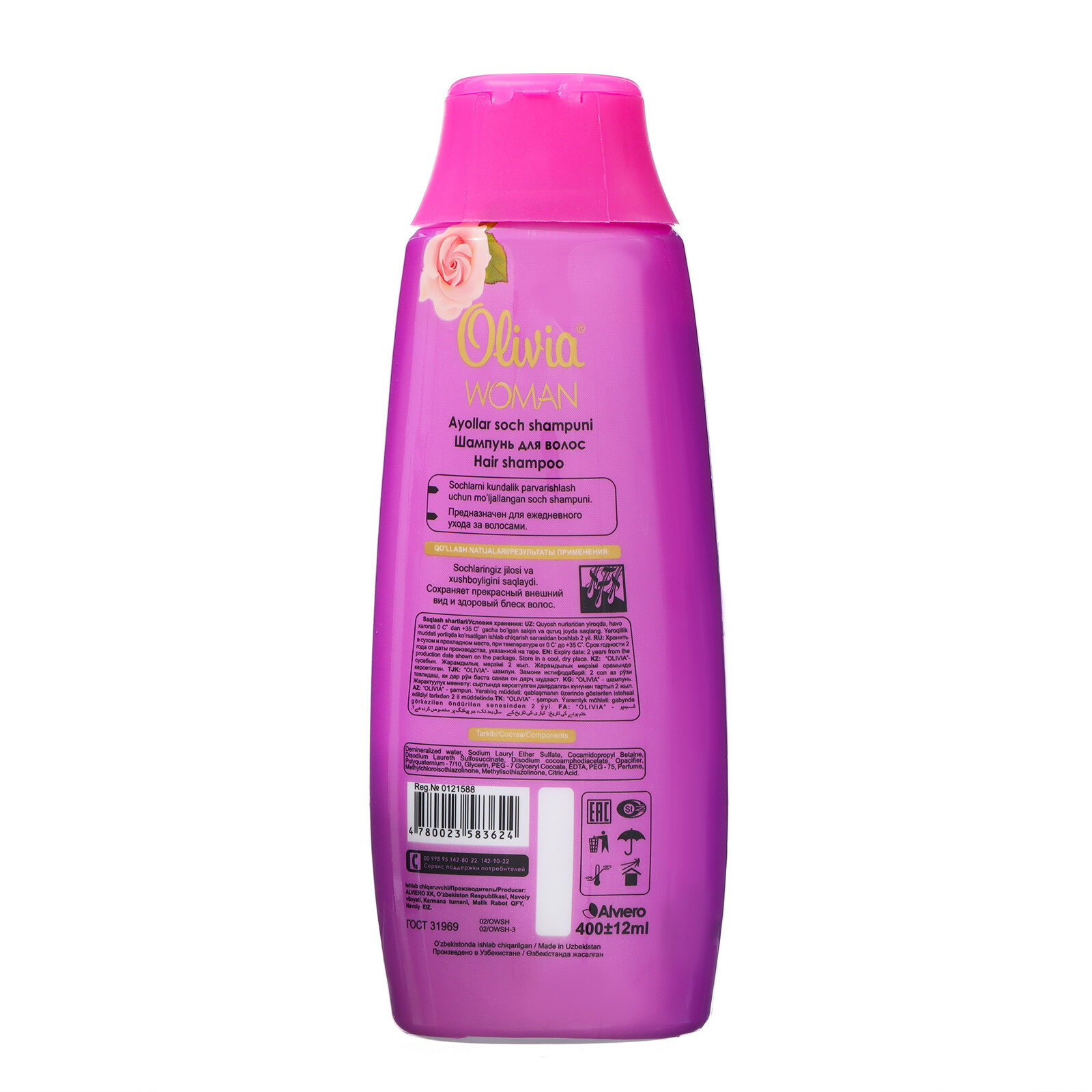 ALVIERO "Olivia Woman" - это шампунь, который предназначен для всех типов волос. Он обеспечивает силу и блеск. Объем 400 мл позволяет использовать его для путешествий и командировок. Шампунь содержит натуральные ингредиенты, которые ухаживают за волосами и придают им здоровый вид. Способ применения: нанесите небольшое количество шампуня на влажные волосы, вспеньте и тщательно промойте водой. Повторяйте процедуру до достижения желаемого результата. Для достижения максимального эффекта рекомендуется использовать в сочетании с кондиционером для волос. Преимущества:- Придает волосам силу и блеск- Содержит натуральные ингредиенты- Подходит для всех типов волос- Объем 400 мл удобен для путешествий и командировок- Не содержит оттеночных компонентов, что делает его безопасным для использования
