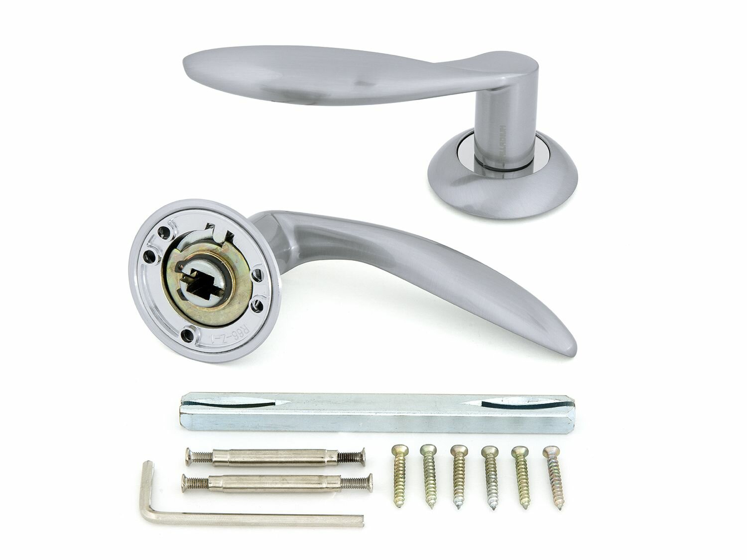 Marta – одна из самых продаваемых дверных ручек в линейке Palladium Revolution. Решительный, но изящный изгиб и математически просчитанные пропорции делают ее приятной глазу и удобной в руке. Модель литая, из сплава ЦАМ (Zamak). Это оптимальный материал для ручки: крепкий (твердость на уровне малоуглеродистой стали), практичный и теплый на ощупь. Покрытие нанесено в 6 слоев, причем финишный лаковый слой – двойной. Стойкость гальваники – 96+ часов в едком соляном тумане без следов ржавчины. В обычных условиях эксплуатации первых пятен и заметных потертостей стоит ждать лет через 7-10 лет, не раньше. В комплекте: 2 ручки квадрат 8х105 мм стяжки, крепеж инструкция по установке гарантийный талон Материал: ЦАМ (цинк, алюминий, медь) Длина ручки: 140 мм Размер розетки: 55 мм Цвет: матовый хром Накладки и завертки к этой ручке