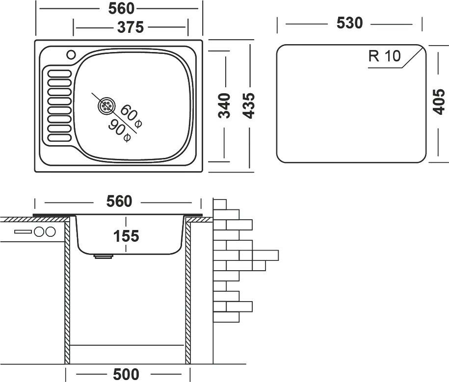 Мойка кухонная врезная Ukinoх 560 х 435 мм (размер: 56х43.5)