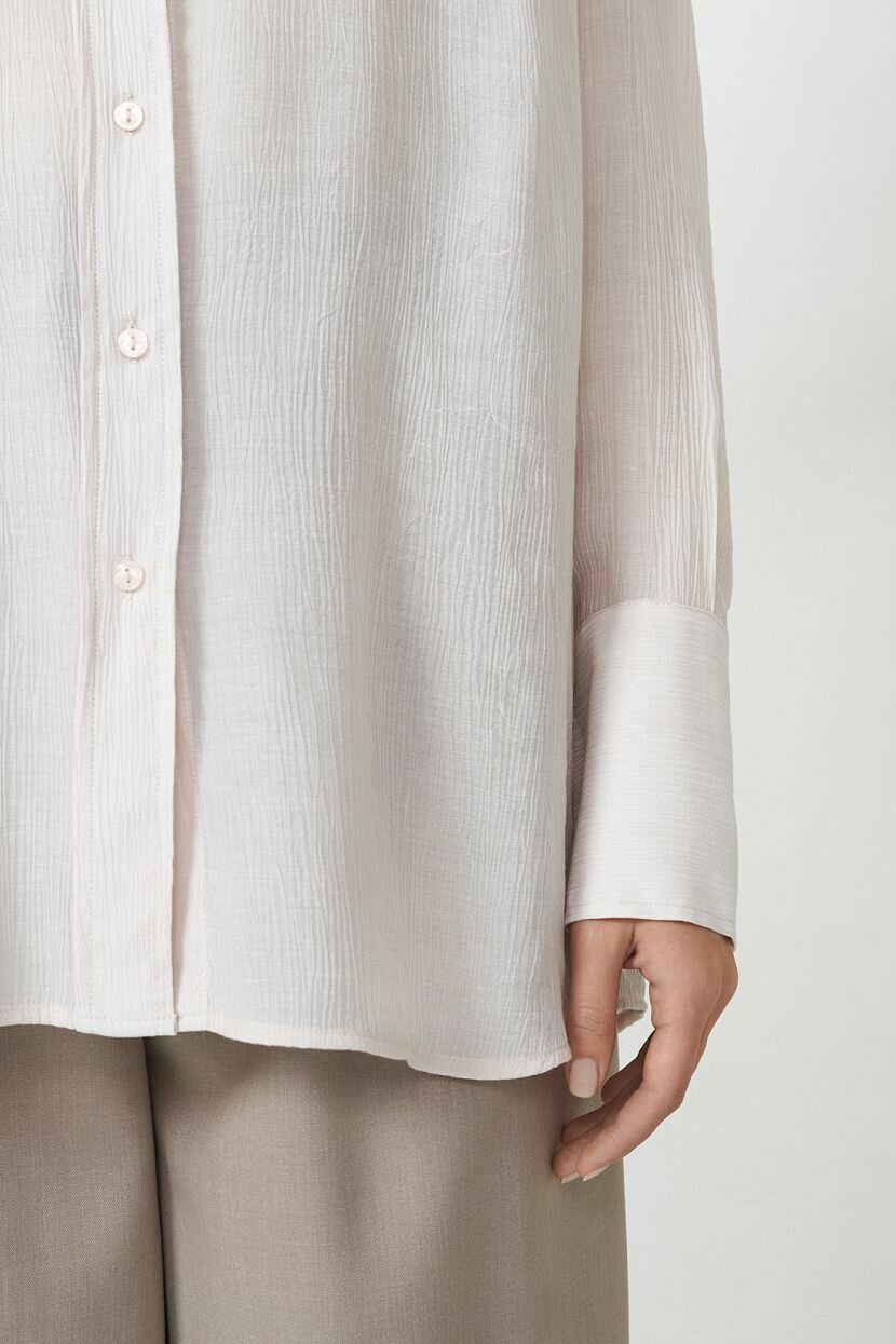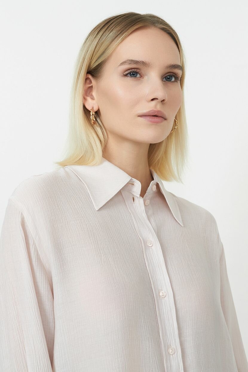 Модель выполнена из дышащей ткани с жатым эффектом. Вискоза комфортна в любую погоду: в одежде из такого материала не бывает жарко или холодно. Полиамид в составе материала делает его прочнее, благодаря чему модель дольше сохраняет свою фактуру и аккуратный внешний вид. Обратите внимание: изделие из натуральных волокон может давать усадку, поэтому стирайте блузку в бережном или ручном режиме при температуре не выше 30 градусов.