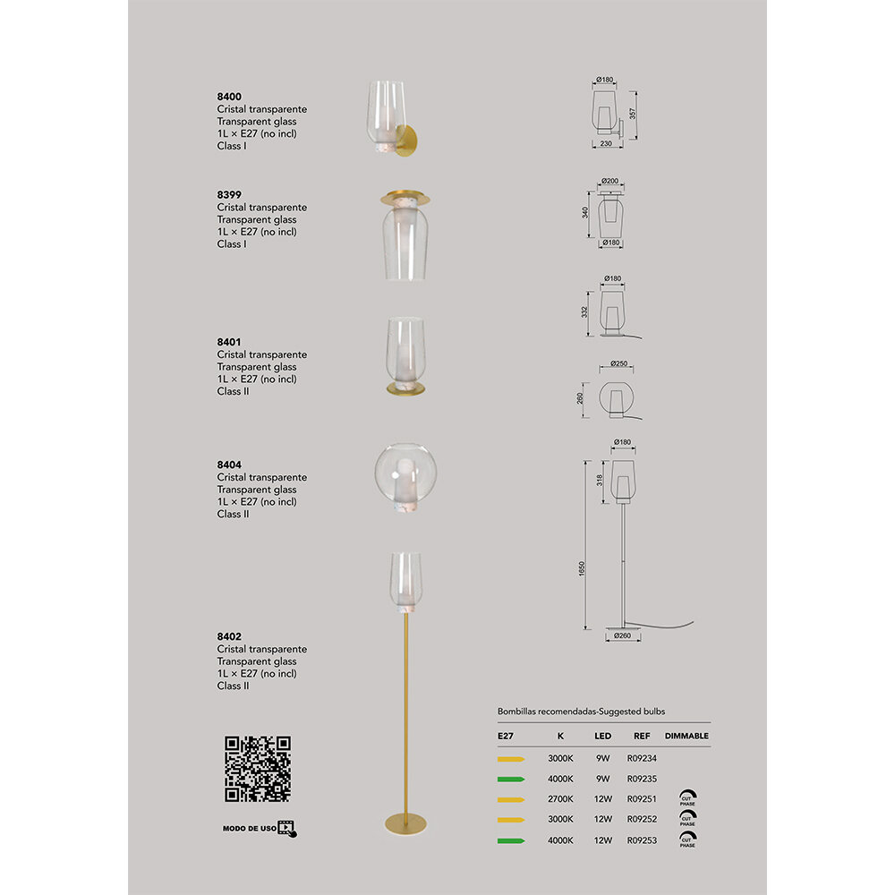 | Цвет плафонов | Прозрачный |