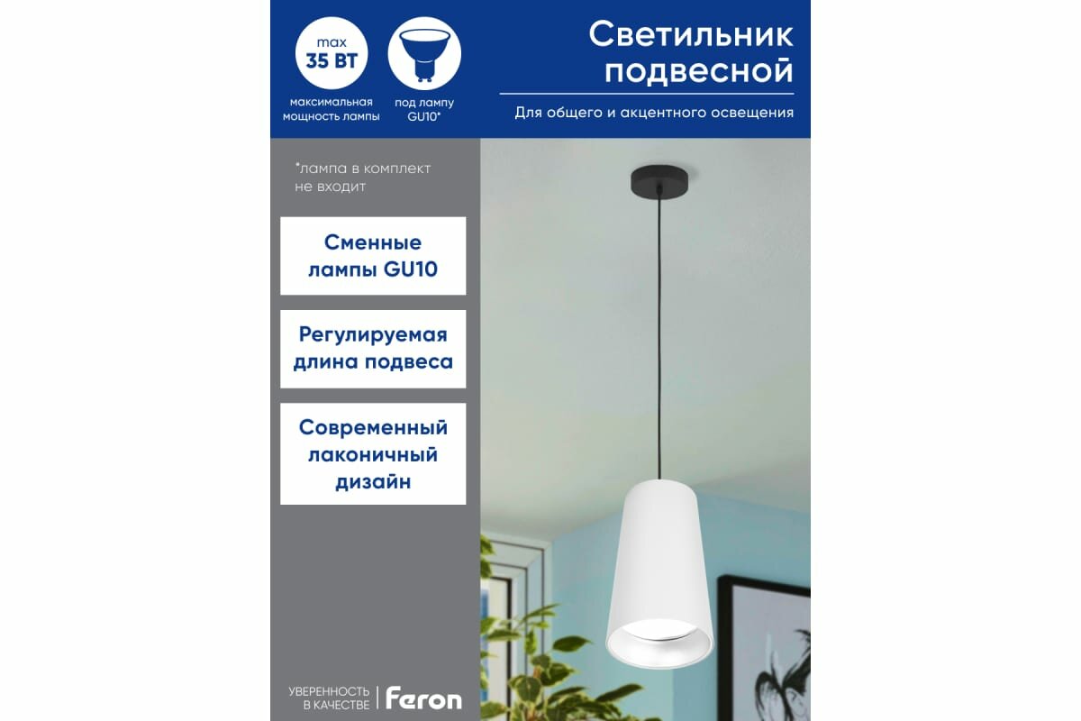 Светильник потолочный на подвесе Feron MR16 - это стильный и функциональный осветительный прибор, который идеально подойдет для любого интерьера. Он имеет мощность 35 Вт и напряжение 230 В, что обеспечивает яркий и равномерный свет. Светильник выполнен в белом цвете и имеет размеры D70 x H110 мм. Благодаря подвесу светильник можно легко регулировать высоту и направление освещения.Преимущества светильника на подвесе от Feron:- Стильный дизайн: светильник гармонично впишется в любой интерьер и станет его украшением.- Яркое и равномерное освещение: благодаря мощности 35 Вт вы получите качественное освещение, которое не будет слепить глаза.- Регулируемый подвес: вы сможете настроить направление и высоту освещения, чтобы создать уютную атмосферу в комнате.- Надежность: светильник изготовлен из качественных материалов, которые обеспечивают его долговечность и надежность.Светильник Feron на подвесе - это отличный выбор для тех, кто ищет стильный и функциональный светильник для своего дома или офиса. Он станет незаменимым элементом интерьера и поможет создать уютную и комфортную атмосферу.