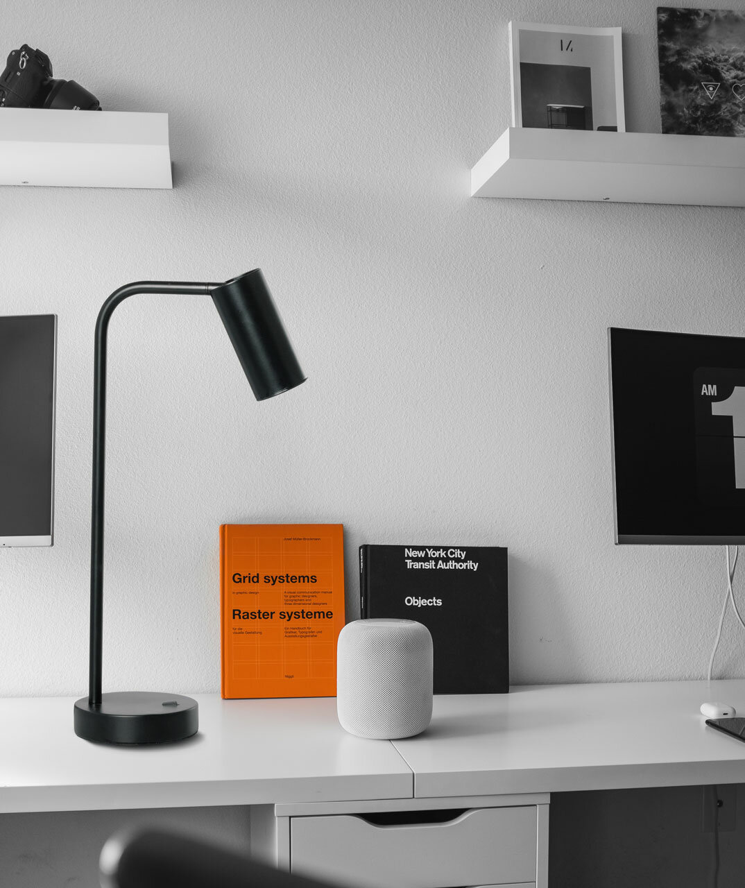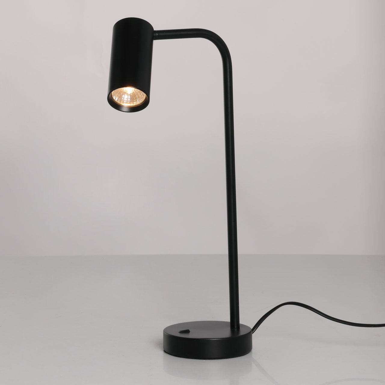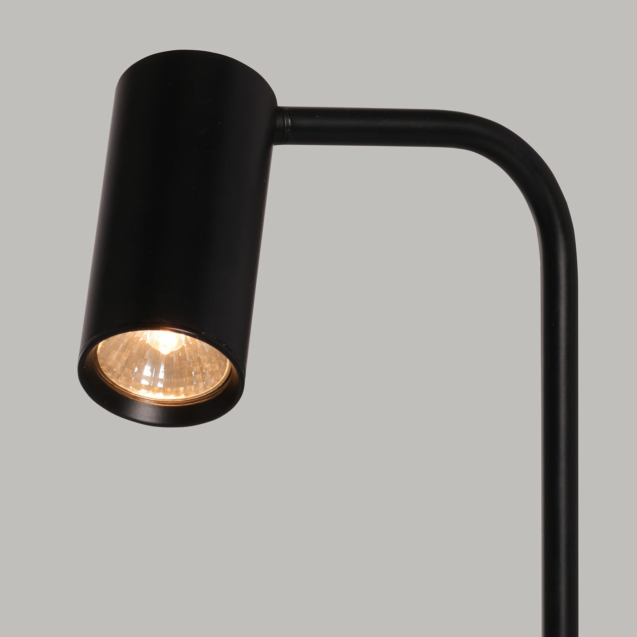 Минималистичный дизайн настольной лампы подходит для современных интерьеров. Черный цвет основания прекрасно подойдет для брутальных интерьеров в стиле лофт. Заменяемые источники света удобны в эксплуатации. Направленный свет создает рабочее настроение. Изменение угла наклона плафона позволяет менять направление светового луча. Металлическое основание окрашено в черный цвет. Корпус плафона выполнен из сплава алюминия и окрашен в цвет основания.