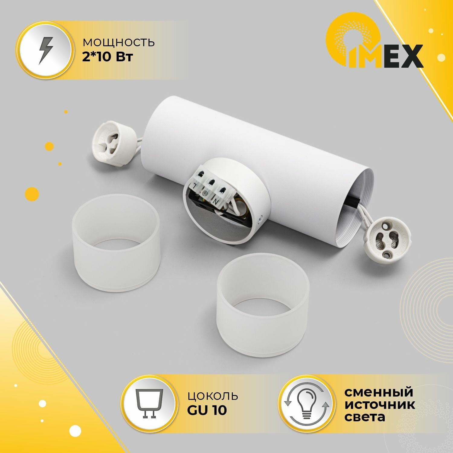 Настенные светильники в стиле Techno в них сочетаются элементы современного и футуристического дизайна. Споты – универсальное и стильное световое решение в мире современного дизайна. Они не только обеспечивают комфортный свет и помогают расставить нужные акценты в интерьере. В маленьких комнатах, а также в случае низкого потолка споты составляют достойную альтернативу традиционным люстрам и отлично справляются с ролью основного источника света. Компания IMEX предлагает потолочные и настенные точечные светильники споты для дома и общественных пространств. В нашем ассортименте модели различного типа крепления с разным количеством ламп. Настенный светильник (спот) из серии «LEON» это сочетание металлического корпуса и акрилового плафона. Серия представлена в самых популярных цветовых решениях: белый, белый и матовое золото, черный и белый. Характеристики спотов серии «LEON»:Мощность общая: 20 ВтНапряжение: 220 VСтепень IP: 20Тип цоколя: GU10Материал корпуса: металлМатериал плафонов: акрил + металл