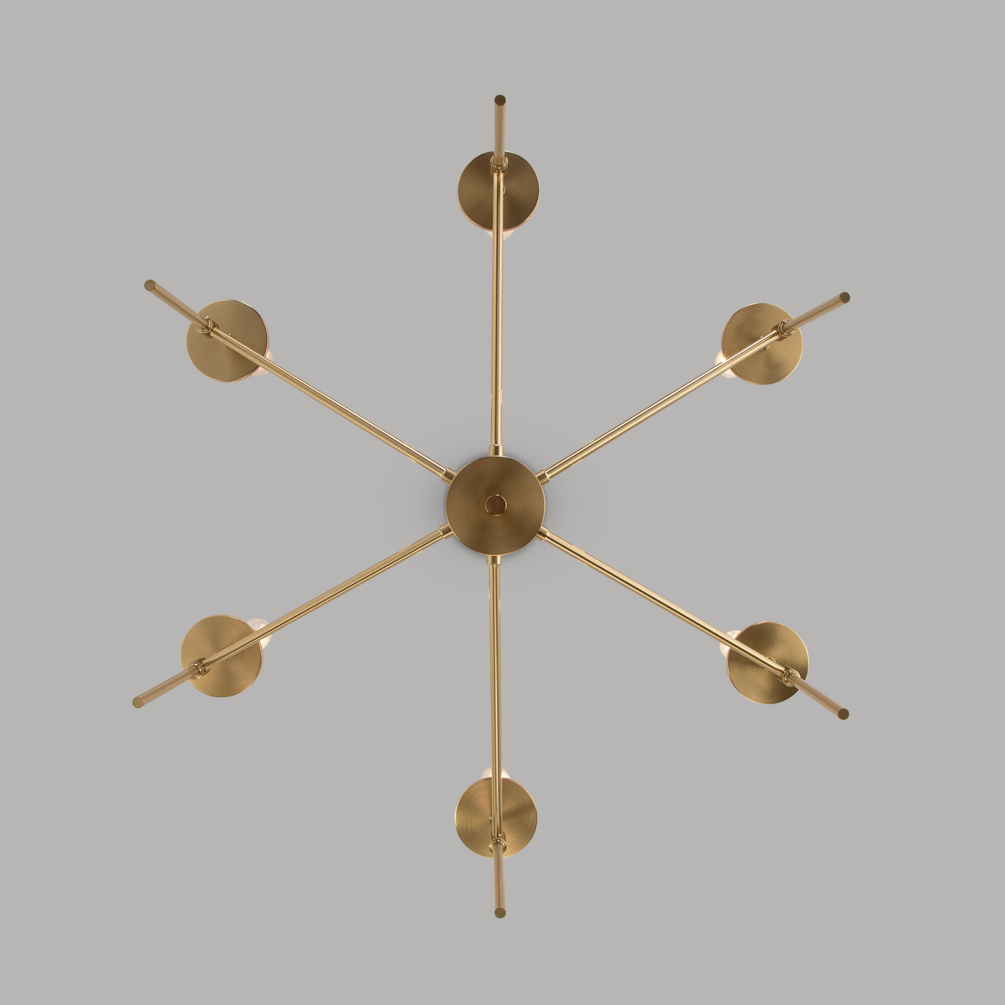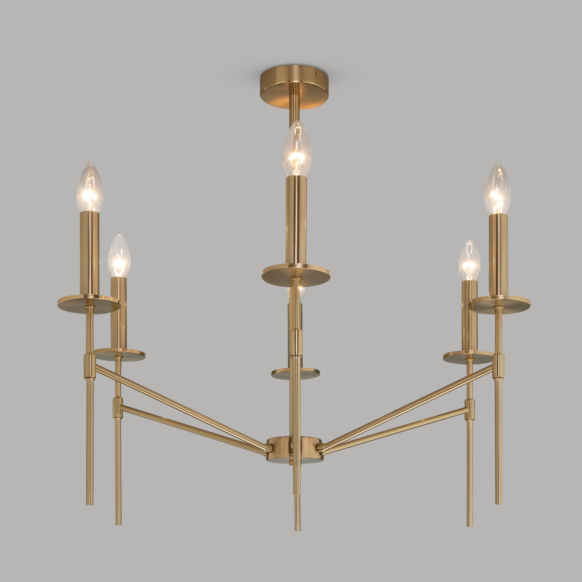 Потолочная люстра Eurosvet Anders 60142/6 в цвете латунь - это острое сочетание трендовой геометрии и концепции традиционной люстры-канделябра. Шесть открытых источников света без привычных для нас стеклянных плафонов подчеркивают четкость линий модели и оригинальность задумки. В светильнике используются сменные лампы с цоколем E14. Благодаря гармоничному сочетанию классических и современных дизайн-приемов потолочный светильник Anders создаст запоминающийся визуальный образ в любом интерьере гостиной, спальни или кухни.