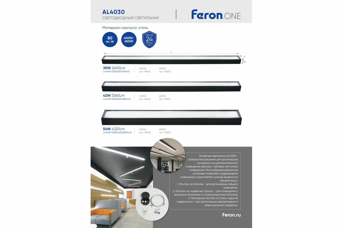 Сервис сравнения цен СкидкаГИД предлагает сравнить цены на товар «Линейный светодиодный светильник Feron AL4030 / 48534»