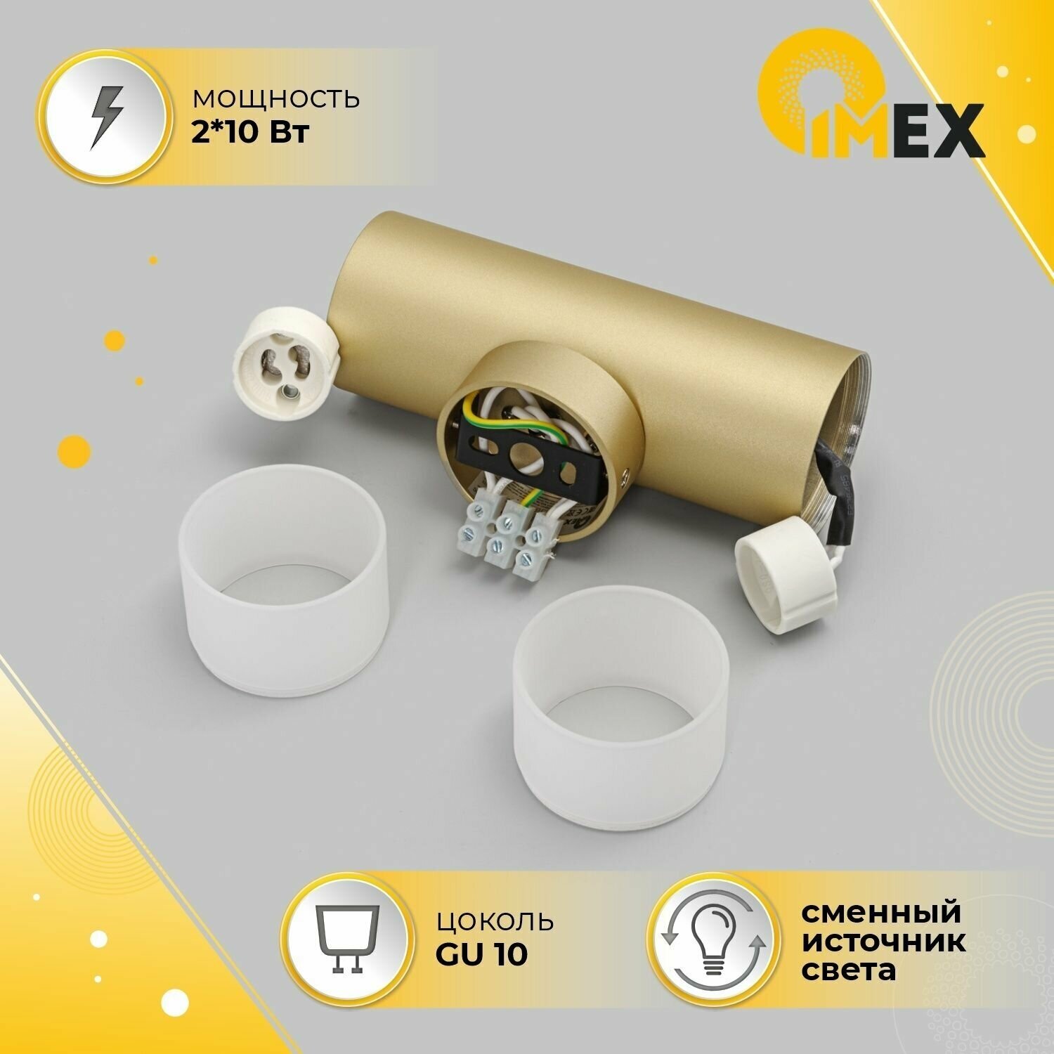 Настенные светильники в стиле Techno в них сочетаются элементы современного и футуристического дизайна. Споты – универсальное и стильное световое решение в мире современного дизайна. Они не только обеспечивают комфортный свет и помогают расставить нужные акценты в интерьере. В маленьких комнатах, а также в случае низкого потолка споты составляют достойную альтернативу традиционным люстрам и отлично справляются с ролью основного источника света. Компания IMEX предлагает потолочные и настенные точечные светильники споты для дома и общественных пространств. В нашем ассортименте модели различного типа крепления с разным количеством ламп. Настенный светильник (спот) из серии «LEON» это сочетание металлического корпуса и акрилового плафона. Серия представлена в самых популярных цветовых решениях: белый, белый и матовое золото, черный и белый. Характеристики спотов серии «LEON»:Мощность общая: 20 ВтНапряжение: 220 VСтепень IP: 20Тип цоколя: GU10Материал корпуса: металлМатериал плафонов: акрил + металл