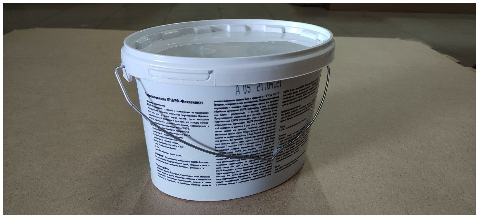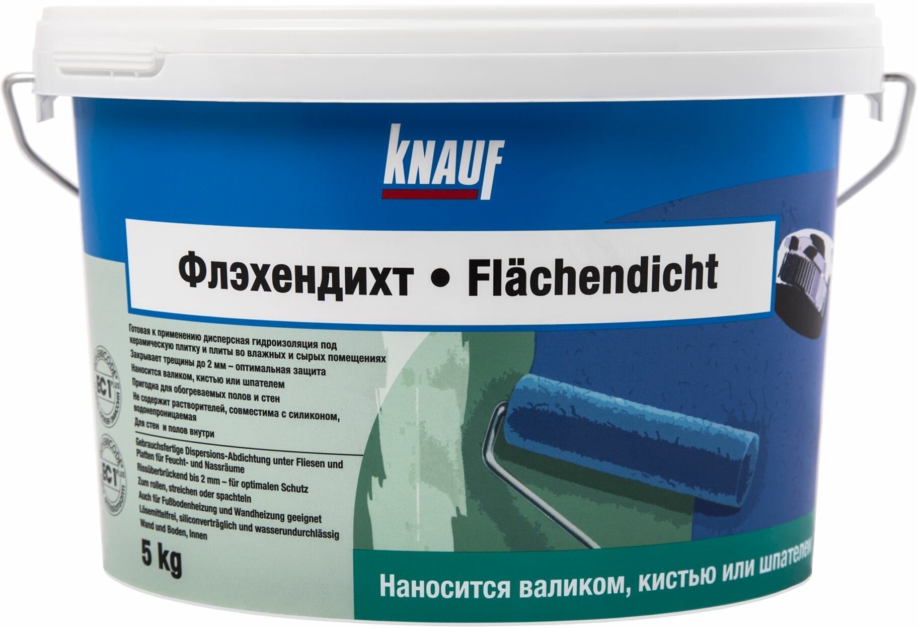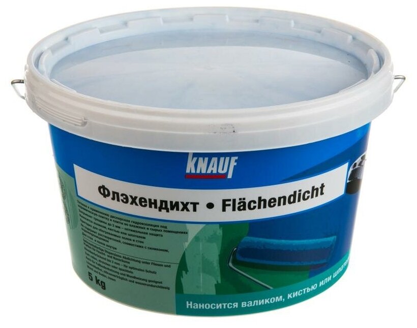 КНАУФ-Флэхендихт представляет собой водную дисперсию синтетического латекса и инертных заполнителей голубого цвета, используемая для гидроизоляции поверхностей стен и пола внутри зданий. Не содержит растворителей.