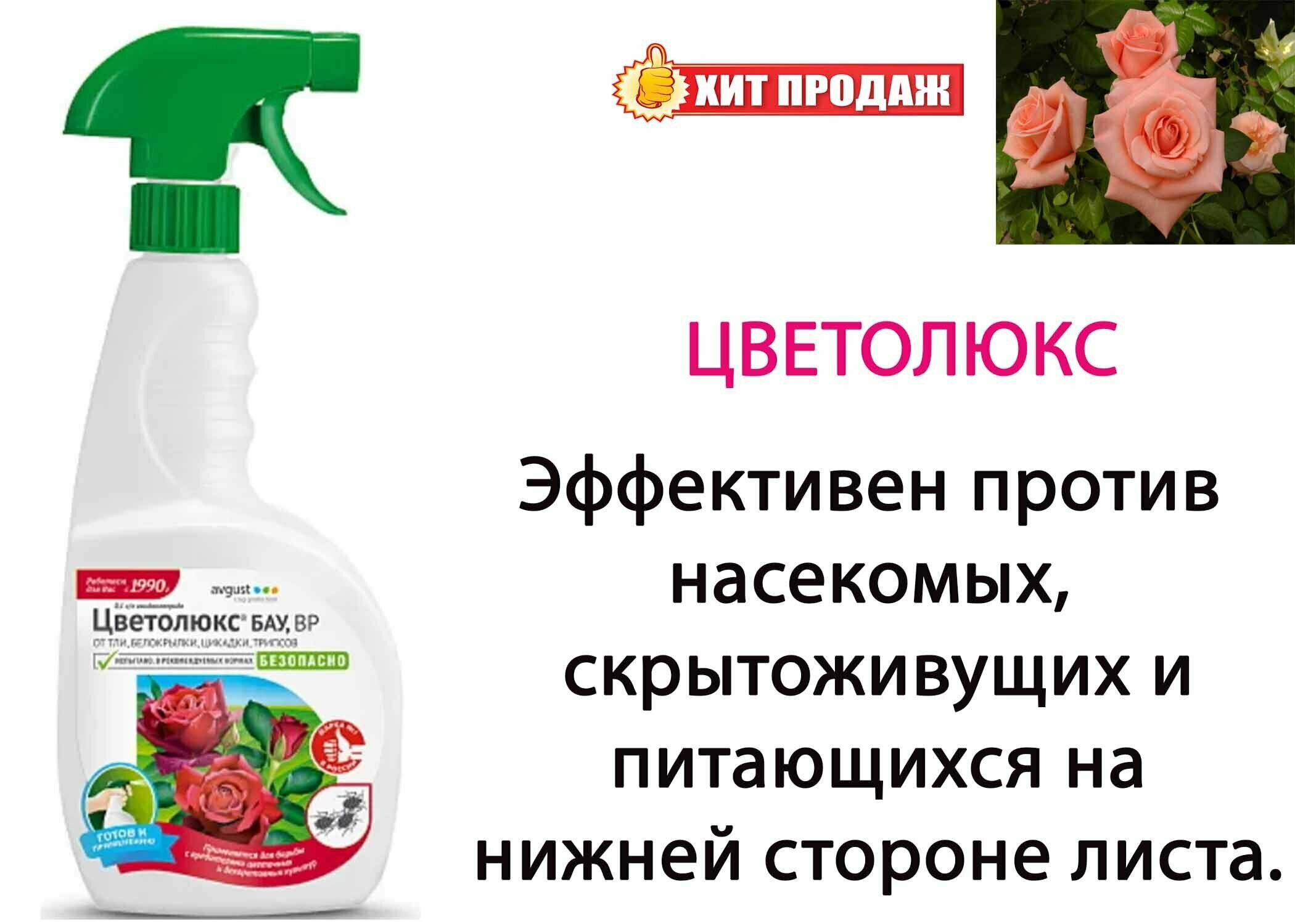 Сервис сравнения цен СкидкаГИД предлагает сравнить цены на товар «Средство от тли белокрылки цикадок и трипсов Avgust Цветолюкс-Бау 700 мл»