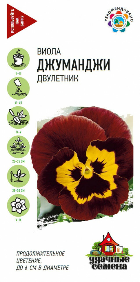 Популярное двулетнее растение из семейства Фиалковые высотой 25-30 см. Обильно и продолжительно цветет с мая по сентябрь. Цветки крупные (до 6 см в диаметре), в желто-коричневых тонах. Растение влаголюбивое, холодостойкое, хорошо растет на солнце и в полутени. Для получения растений, цветущих в год посева, выращивают через рассаду. При безрассадном способе выращивания цветение наступает на второй год. Используют для посадки на клумбы, рабатки, в балконные ящики и садовые вазы.