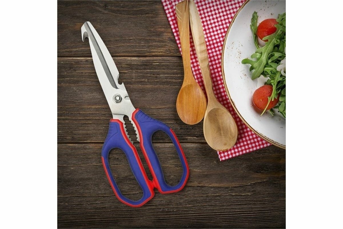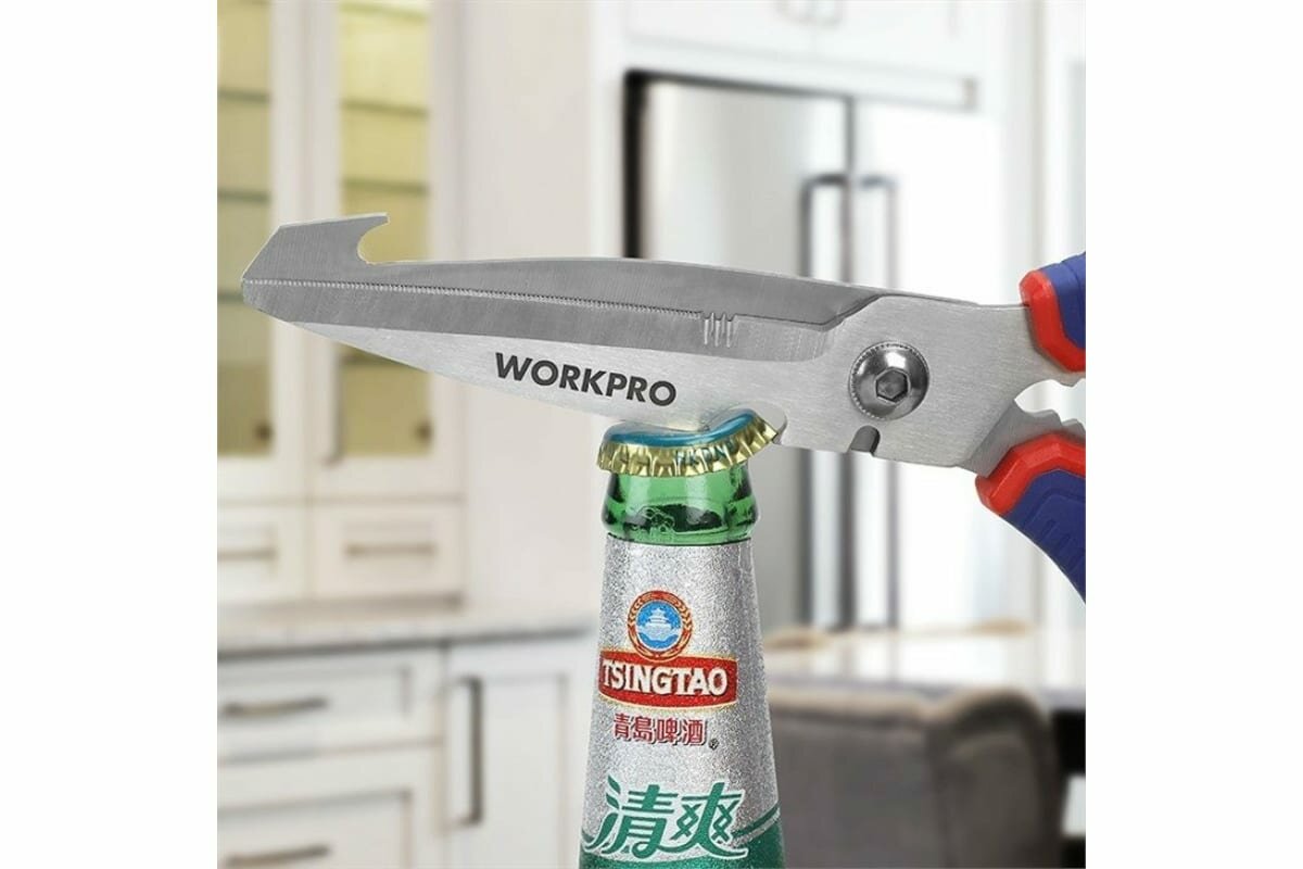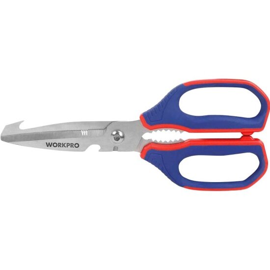 Многофункциональные кухонные ножницы WORKPRO 250 мм WP214006 предназначены для разделки птицы, мяса, чистки рыбы. За счет эргономичной формы удобны в использовании. Благодаря небольшому весу рука не устает при работе с ними. Ножницы имеют острые лезвия, что экономит время и силы.