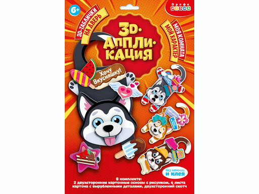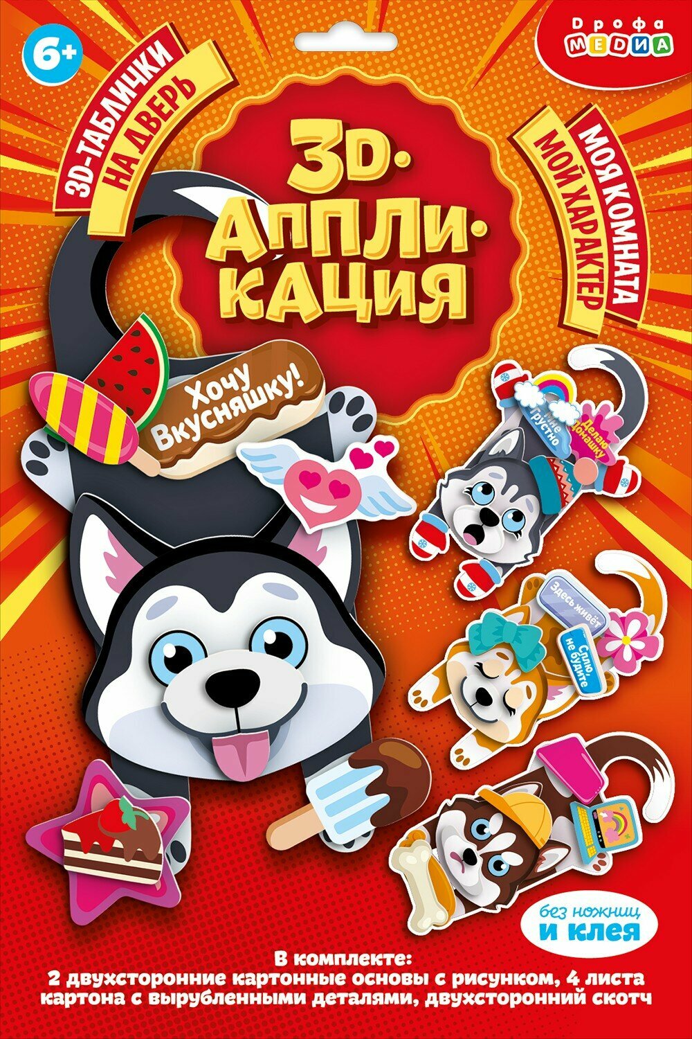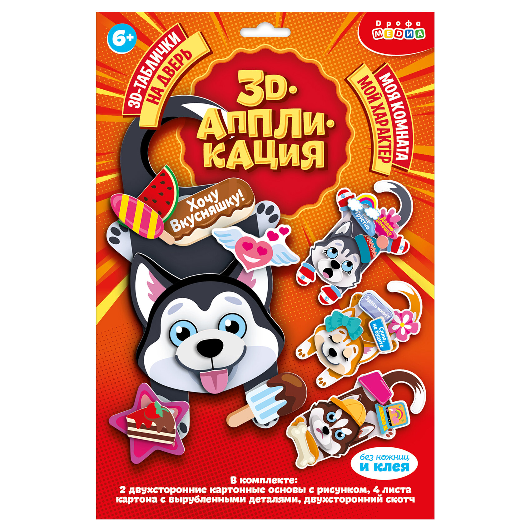 Объёмную 3D-табличку ребёнок легко сделает сам, ведь клей и ножницы ему не понадобятся. Детали уже вырублены, нужно только аккуратно выдавить их из основы и приклеить на картинку объёмным двусторонним скотчем. Яркие 3D-аксессуары наклеиваются в несколько слоёв, что придаёт плоской табличке эффект объёма.