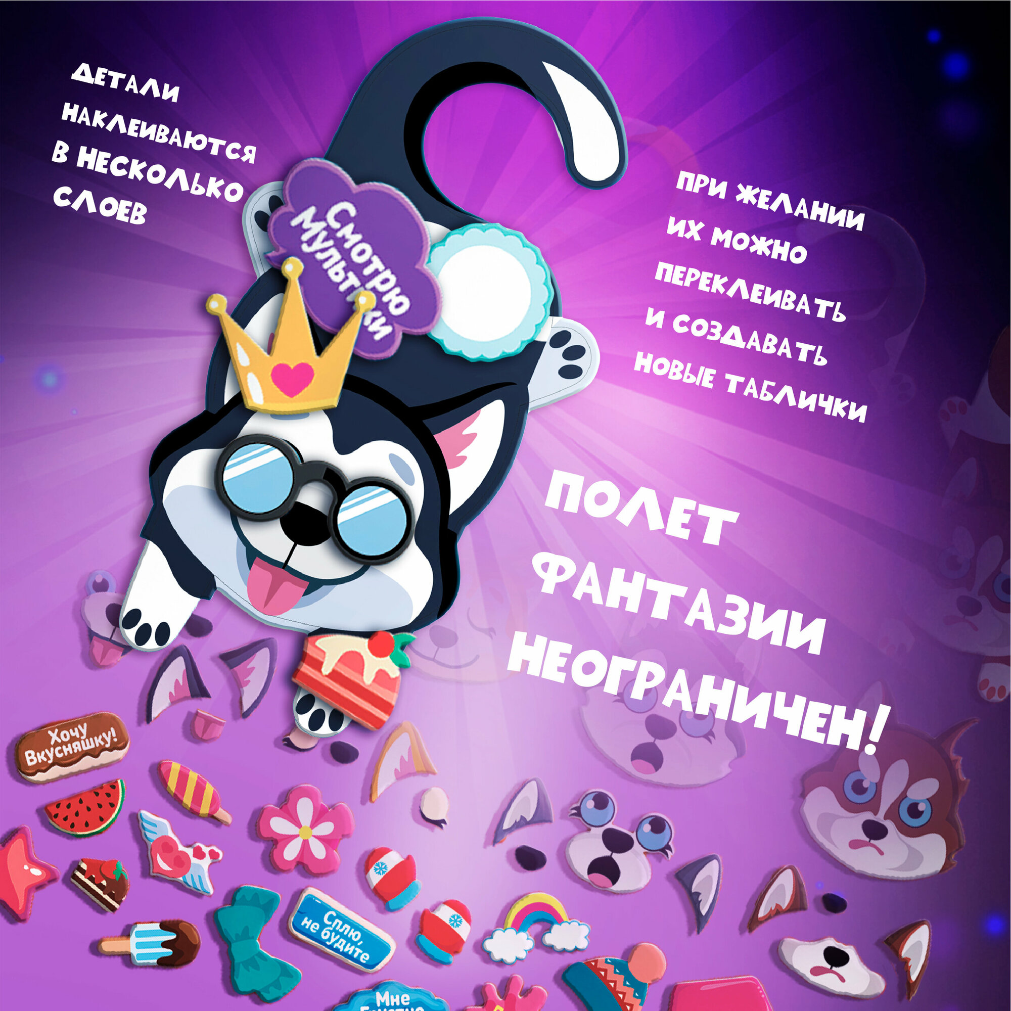 В наборе 4 классных таблички, которые нужно украсить яркими 3D-деталями и забавными надписями. "Хочу вкусняшку!", "Смотрю мультики!" "Сплю, не будите!" "Делаю домашку" - каждый найдёт надпись по душе. А если ни одна всё-таки не подойдёт, напиши свои слова - в наборе есть пустые плашки специально для такого случая. Можно комбинировать по 2 надписи на одной табличке, а при желании и аккуратно менять уже приклеенные.