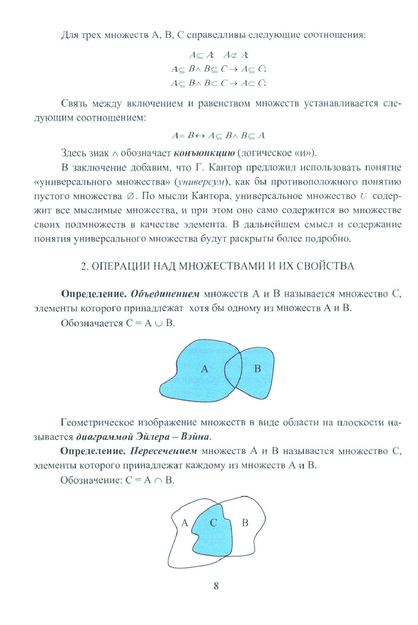 Изложены основные понятия теории множеств, общие свойства построенных на ее базе дискретных алгебраических структур. Рассмотрены конкретные примеры структур Галуа (групп, колец и полей), в том числе булевой алгебры, наиболее часто используемые в приложениях дискретной математики (конечной геометрии, теории кодирования, сетей и конечных автоматов).