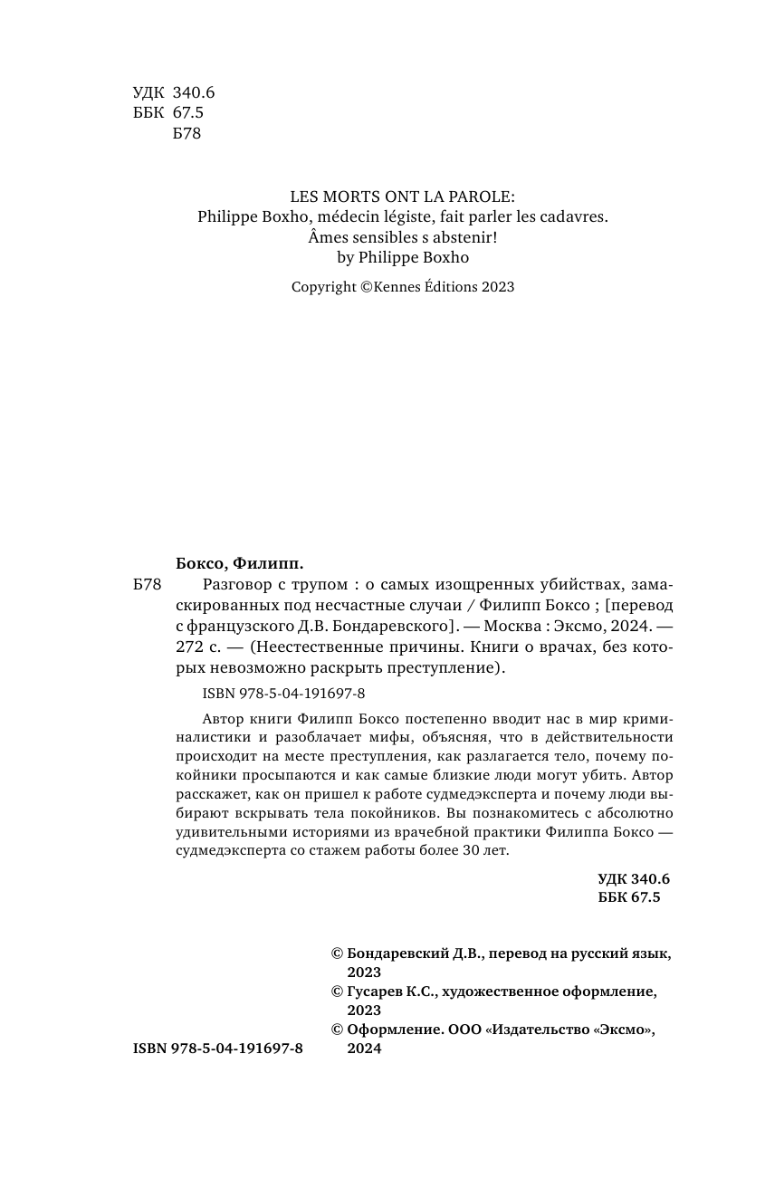 Разговор с трупом. О самых изощренных убийствах замаскированных под несчастные случаи (Боксо Филипп); ООО "Издательство "Эксмо", 2023