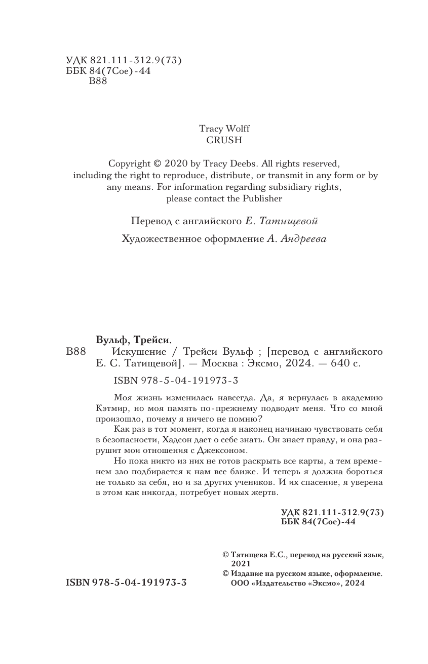 Моя жизнь изменилась навсегда. Да, я вернулась в академию Кэтмир, но моя память по-прежнему подводит меня. Что со мной произошло, почему я ничего не помню? Как раз в тот момент, когда я наконец начинаю чувствовать себя в безопасности, Хадсон дает о себе знать. Он знает правду, и она разрушит мои отношения с Джексоном. Но пока никто из них не готов раскрыть всех карт, а тем временем зло подбирается к нам все ближе. И теперь я должна бороться не только за себя, но и за других учеников. И их спасение, я уверена в этом как никогда, потребует новых жертв.