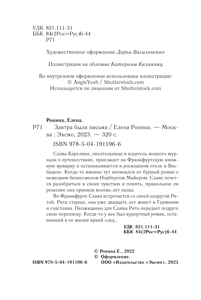 Книга: Завтра были письма (Ронина Елена); ООО "Издательство "Эксмо", 2023