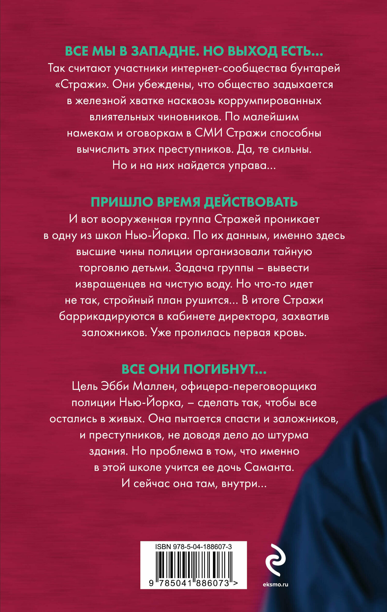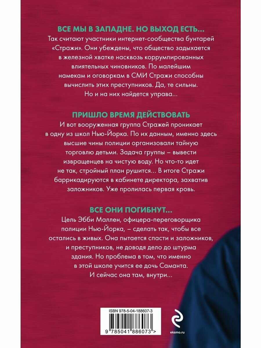 Все мы в западне. Но выход есть… Так считают участники интернет-сообщества бунтарей "Стражи". Они убеждены, что общество задыхается в железной хватке насквозь коррумпированных влиятельных чиновников. По малейшим намекам и оговоркам в СМИ Стражи способны вычислить этих преступников. Да, те сильны. Но и на них найдется управа… Пришло время действовать. И вот вооруженная группа Стражей проникает в одну из школ Нью-Йорка. По их данным, именно здесь высшие чины полиции организовали тайную торговлю детьми. Задача группы – вывести извращенцев на чистую воду. Но что-то идет не так, стройный план рушится… В итоге Стражи баррикадируются в кабинете директора, захватив заложников. Уже пролилась первая кровь. Все они погибнут… Цель Эбби Маллен, офицера-переговорщика полиции Нью-Йорка, – сделать так, чтобы все остались в живых. Она пытается спасти и заложников, и преступников, не доводя дело до штурма здания. Но проблема в том, что именно в этой школе учится ее дочь Саманта. И сейчас она там, внутри…