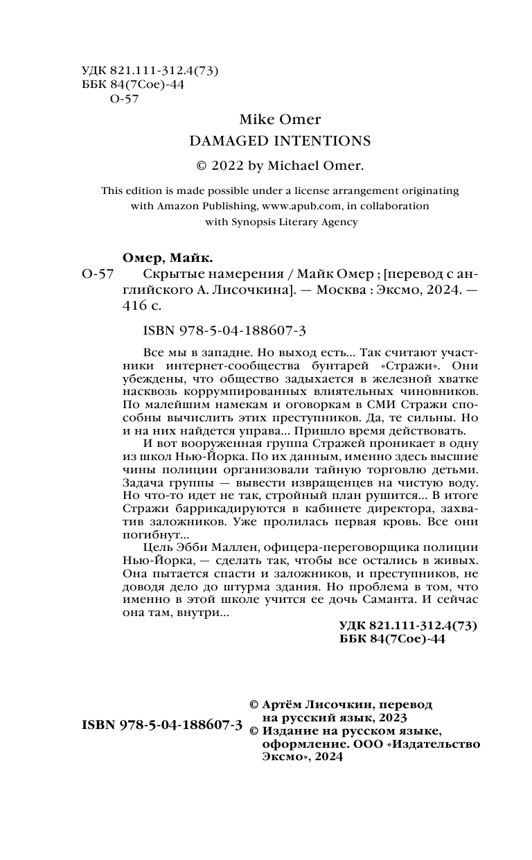 Книга: Скрытые намерения (Майк Омер); Эксмо, Редакция 1, 2024