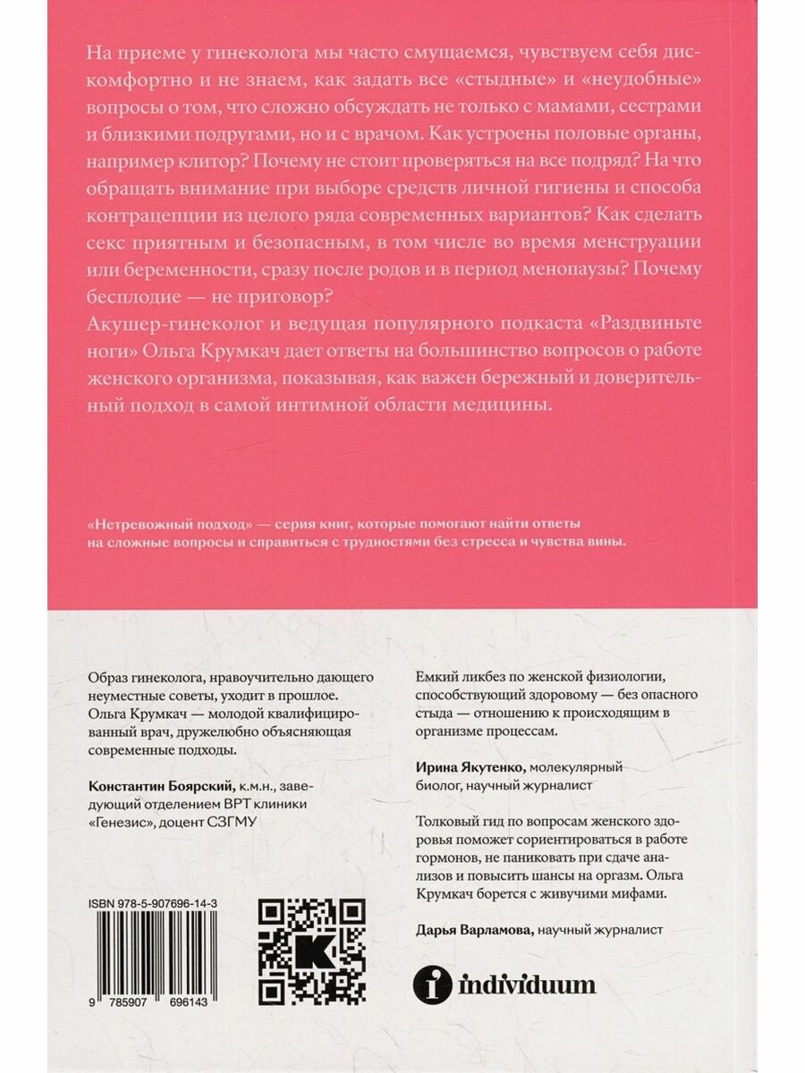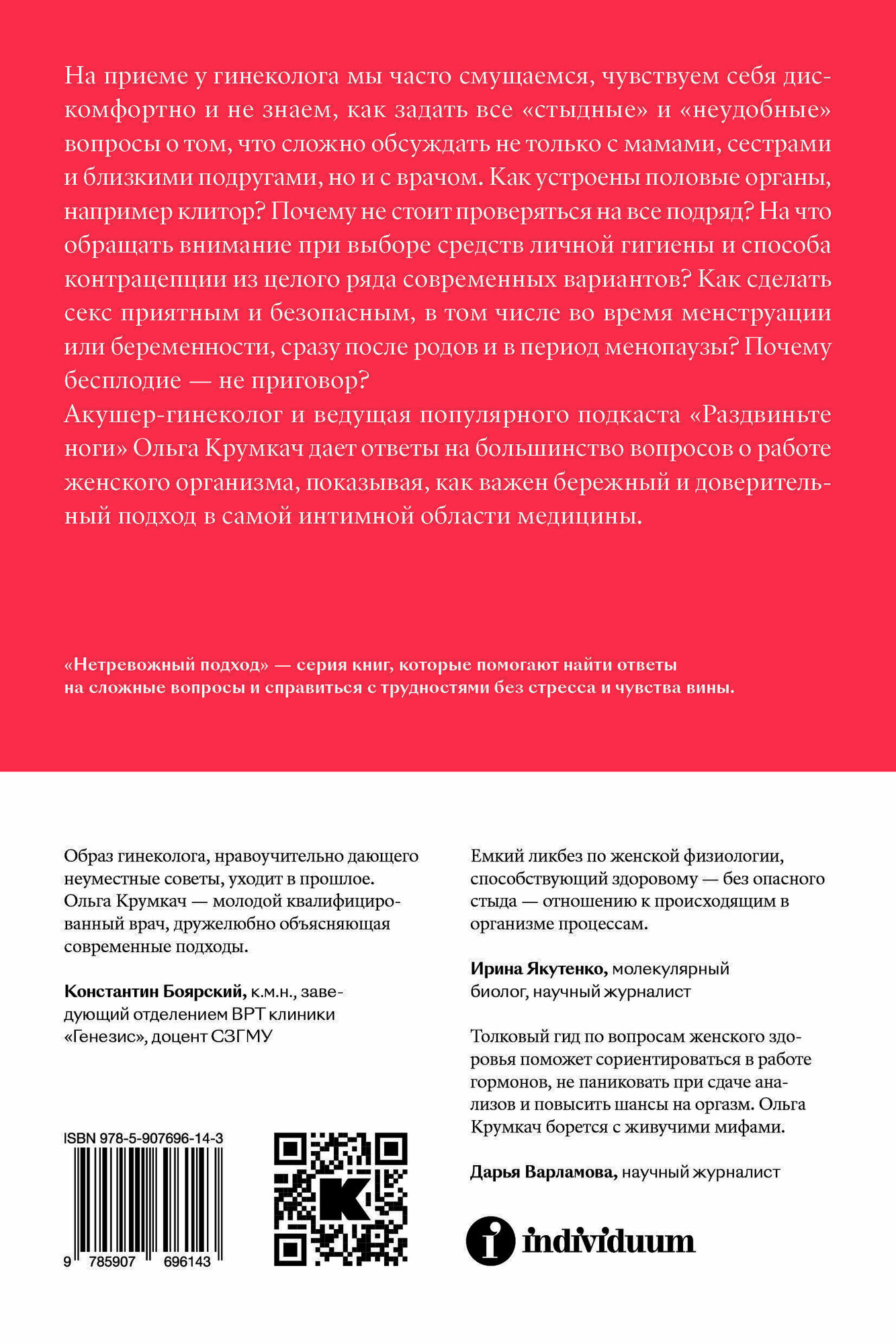 На приеме у гинеколога мы часто смущаемся, чувствуем себя дискомфортно и не знаем, как задать все «стыдные» и «неудобные» вопросы о том, что сложно обсуждать не только с мамами, сестрами и близкими подругами, но и с врачом. Как устроены половые органы, например клитор? Почему не стоит проверяться на все подряд? На что обращать внимание при выборе средств личной гигиены и способа контрацепции из целого ряда современных вариантов? Как сделать секс приятным и безопасным, в том числе во время менструации или беременности, сразу после родов и в период менопаузы? Почему бесплодие ? не приговор?