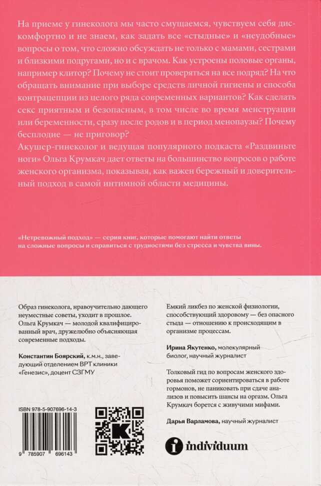 Акушер-гинеколог и ведущая популярного подкаста «Раздвиньте ноги» Ольга Крумкач дает ответы на большинство вопросов о работе женского организма, показывая, как важен бережный и доверительный подход в самой интимной области медицины.