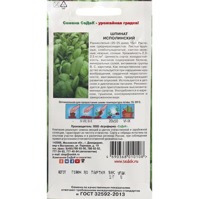 Сервис сравнения цен СкидкаГИД предлагает сравнить цены на товар «Шпинат Исполинский СеДек»