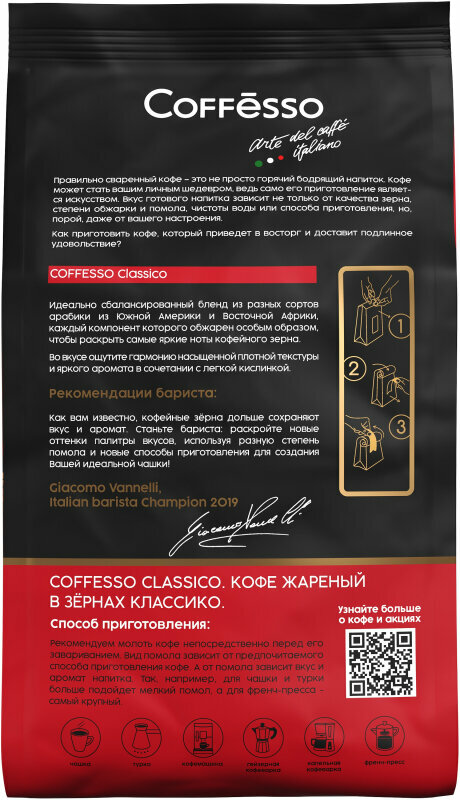 Идеально сбалансированный бленд из разных сортов арабики из Южной Америки и Восточной Африки, каждый компонент которого обжарен особым образом, чтобы раскрыть самые яркие ноты кофейного зерна. Во вкусе ощутите гармонию насыщенной плотной текстуры и яркого аромата в сочетании с легкой кислинкой. Рекомендован Джакомо Ваннелли, Чемпионом Италии среди бариста, 2019.