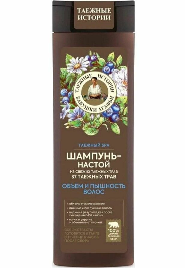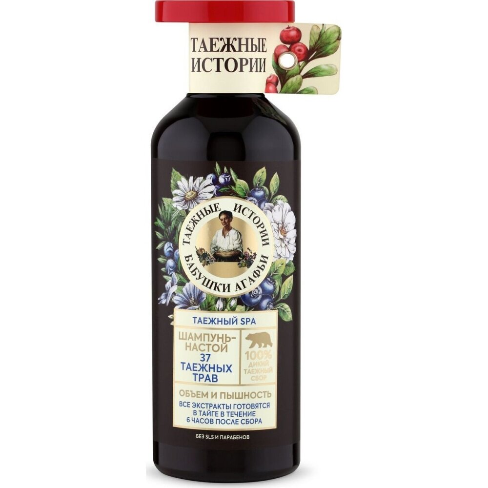 Шампунь Бабушки Агафьи Настой 37 таежных трав объем и пышность Таежные истории 500 мл Рецепты бабушки Агафьи