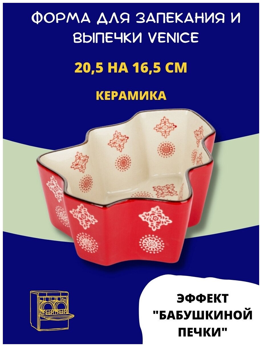 Форма для запекания и выпечки VENICE изготовлена из высококачественной керамики. Покрытие не содержит вредных веществ и абсолютно безопасно для использования. Форма для запекания и выпечки предназначена для использования в духовом шкафу. За формой легко ухаживать, ее можно мыть в посудомоечной машине.