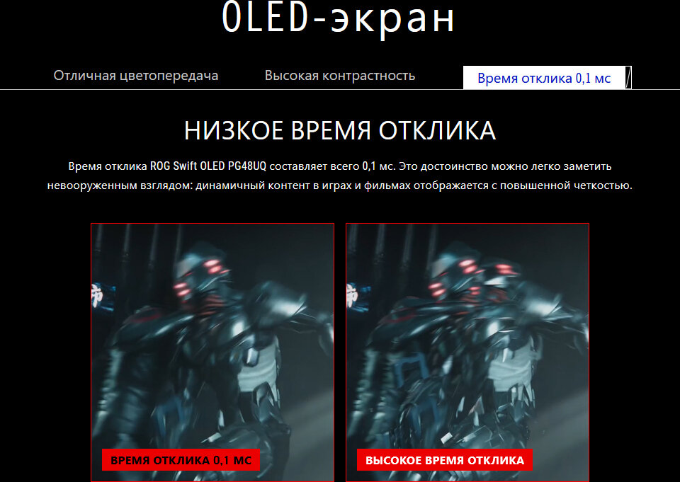| Экран | 47.53 ", 3840x2160, 16:9, OLED, 138 Гц, 450 кд/м2, GTG 0.1 мс, NVIDIA G-Sync |