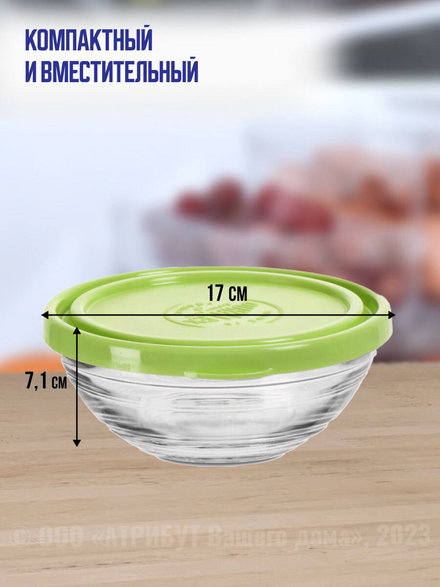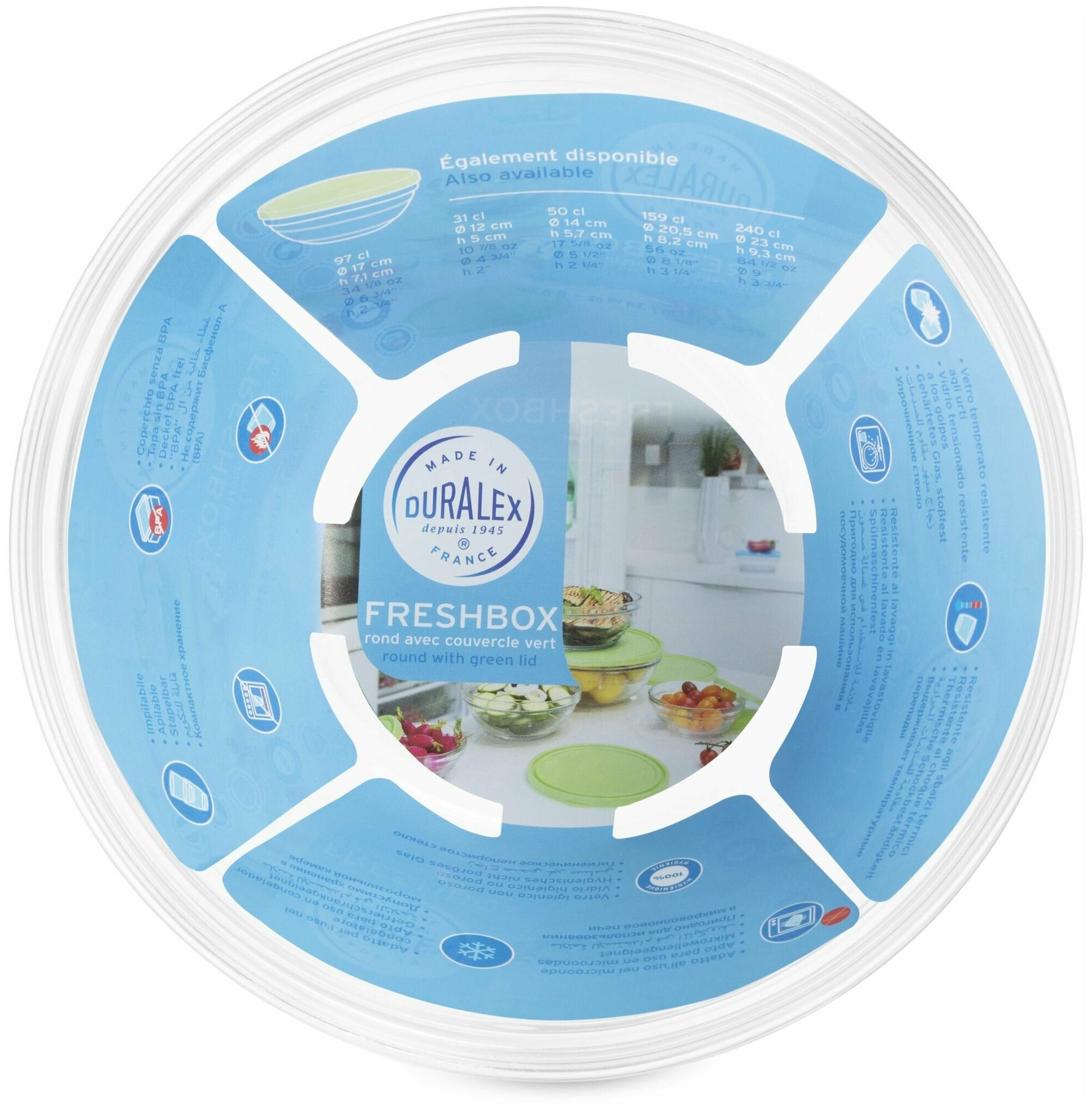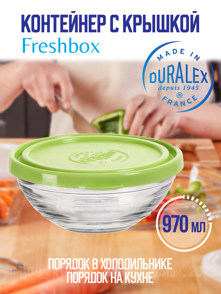 Салатник FRESHBOX 925мл 17см круглый с зелёной крышкой DURALEX 9117AM06A1111